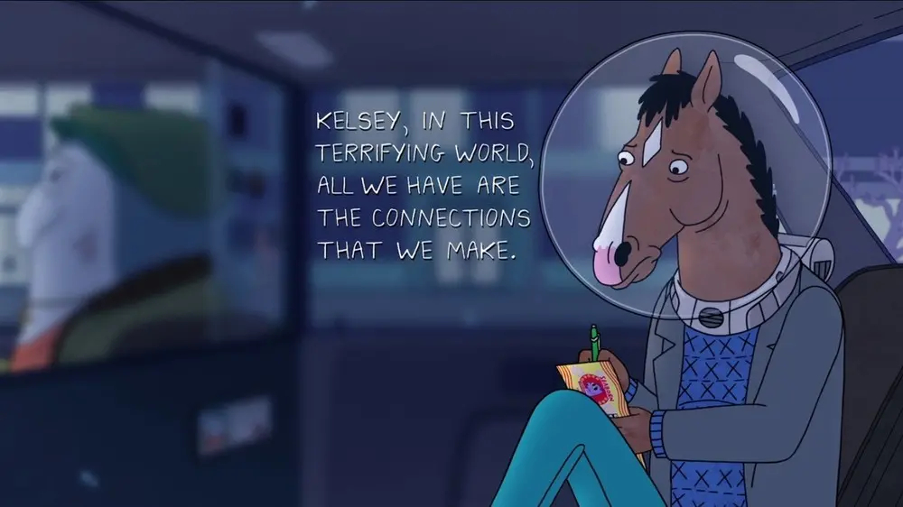 “In this terrifying world, all we have are the connections that we make”: le parole di BoJack in quello che ricorderemo come uno degli episodi più memorabili della serie (Un pesce fuor d’acqua, quarto episodio della terza stagione) in fin dei conti sembrano la descrizione perfetta di questo straordinario show, alla luce del finale che da pochi giorni è finalmente disponibile su Netflix. Non è facile parlare in poche righe di una serie d’animazione capace di farti esplodere in risate fragorose per poi pietrificarti con le sue vicende, le sue verità, il suo acre odore di malinconia, che aleggia, chi più chi meno, su tutti i personaggi. Il resto di questo approfondimento contiene spoiler sul finale di Bojack Horseman, dunque andate avanti nella lettura solo nel caso in cui lo abbiate visto.